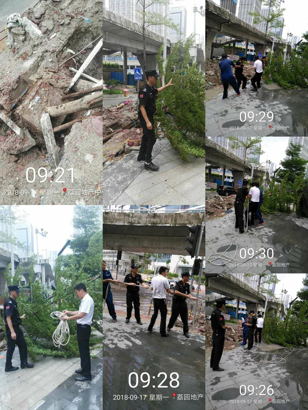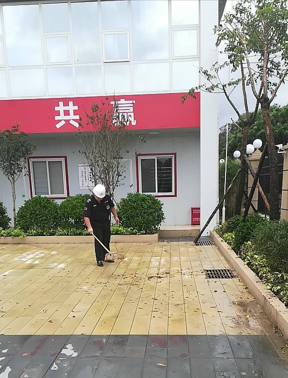 安保和后勤的值守工作人员,冒着风雨抢险救灾,保证交通顺畅,狂风中,他们迎风而上, 不怕脏不怕累,众志成城,任功任怨的羊城安保精神,值得表扬!